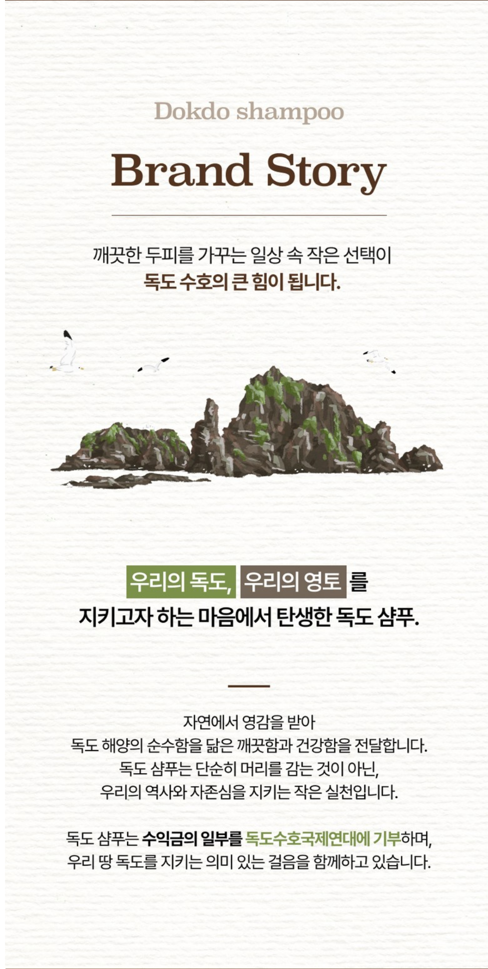 ‘머리를 감는 일상’이 곧 독도를 지키는 실천이 되도록 하고 있습니다.
